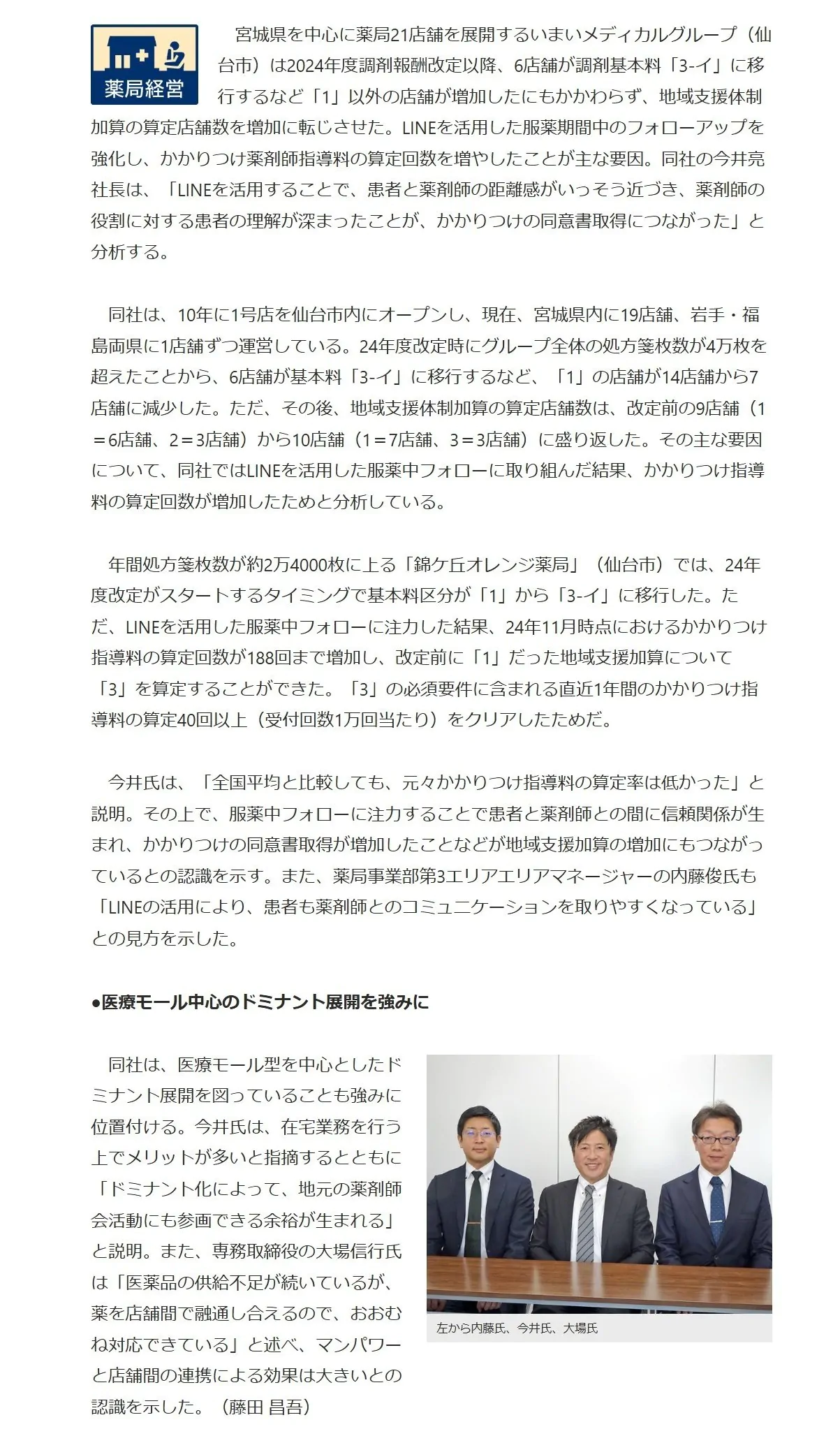 当社の実績が評価され、医療関連の書籍・雑誌の発行を行っている株式会社じほうのPHARMACY NEWSBREAKに記事が掲載されました。